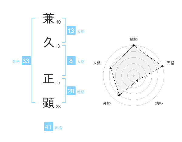 兼久 正顕さんの総格は41画の5点!