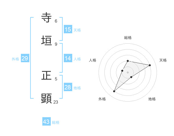 寺垣 正顕さんの天格は15画の4点!