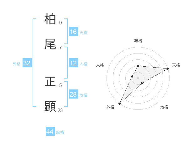 柏尾 正顕さんの天格は16画の5点!