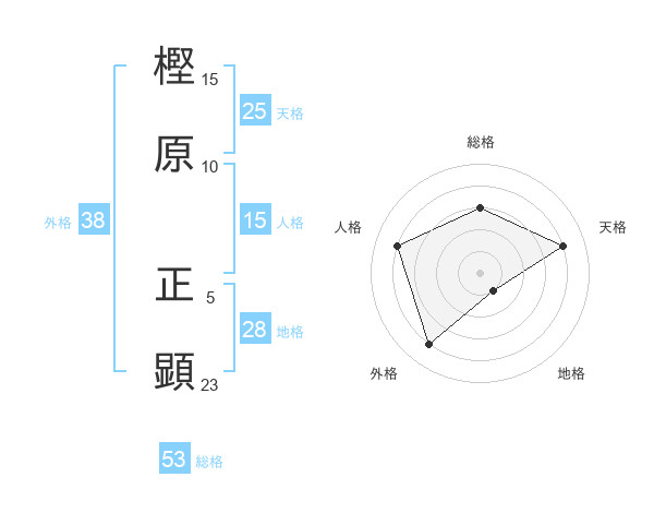 樫原 正顕さんの総格は53画の3点!