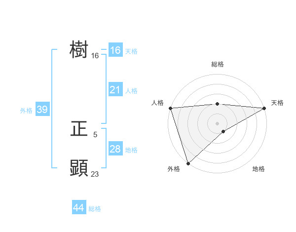 樹 正顕さんの外格は39画の5点!