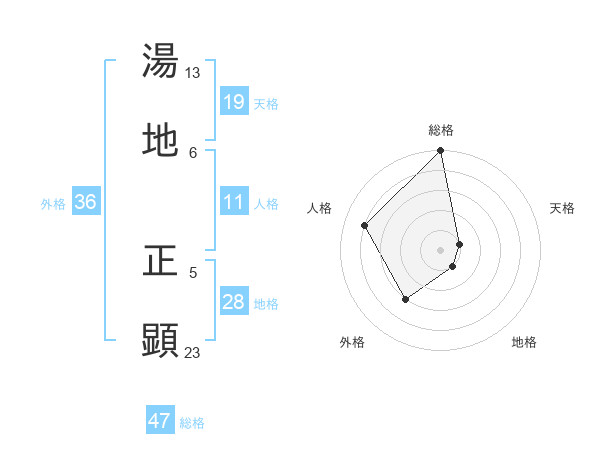 湯地 正顕さんを姓名の画数から五運を鑑定