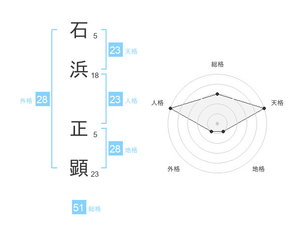 石浜 正顕さんの天格は23画の5点!