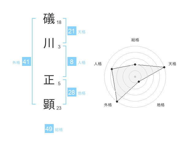 礒川 正顕さんの天格は21画の5点!