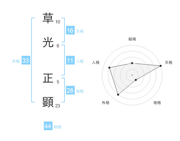草光 正顕さんの天格は16画の5点!