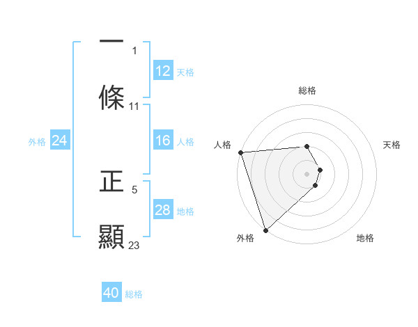 一條 正顯さんの外格は24画の5点!