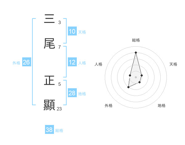 三尾 正顯さんを姓名の画数から五運を鑑定