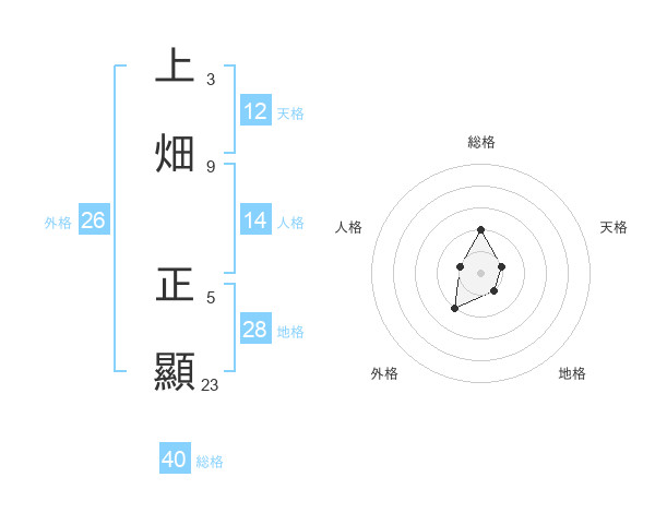 上畑 正顯さんを姓名の画数から五運を鑑定