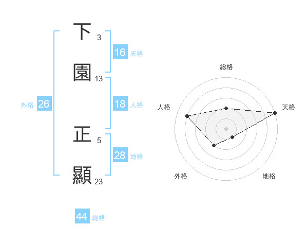 下園 正顯さんの天格は16画の5点!