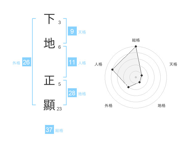下地 正顯さんの総格は37画の5点!