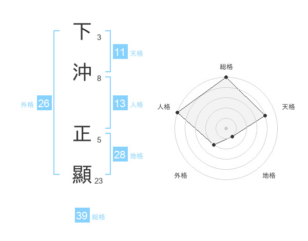 下沖 正顯さんを姓名の画数から五運を鑑定