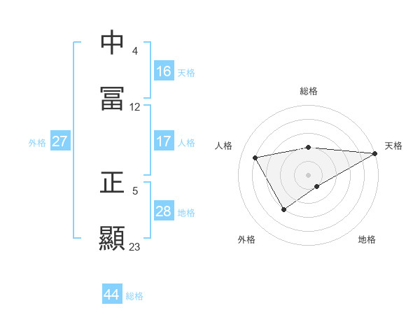 中冨 正顯さんの天格は16画の5点!
