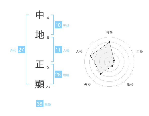 中地 正顯さんの総格は38画の4点!