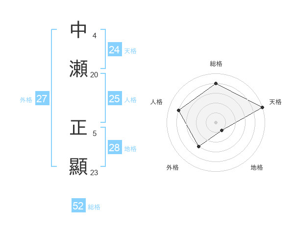 中瀬 正顯さんの総格は52画の4点!