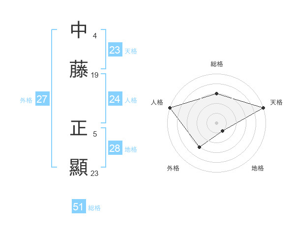 中藤 正顯さんの総格は51画の3点!
