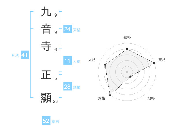 九音寺 正顯さんを姓名の画数から五運を鑑定