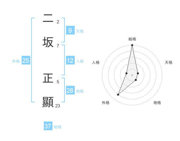 二坂 正顯さんを姓名の画数から五運を鑑定