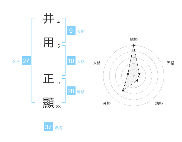 井用 正顯さんの総格は37画の5点!