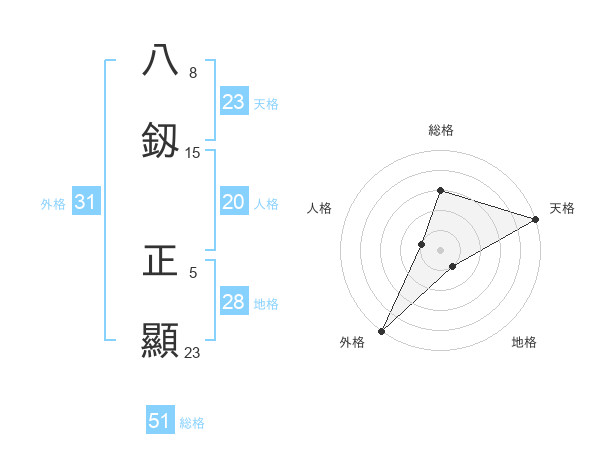 八釼 正顯さんの天格は23画の5点!