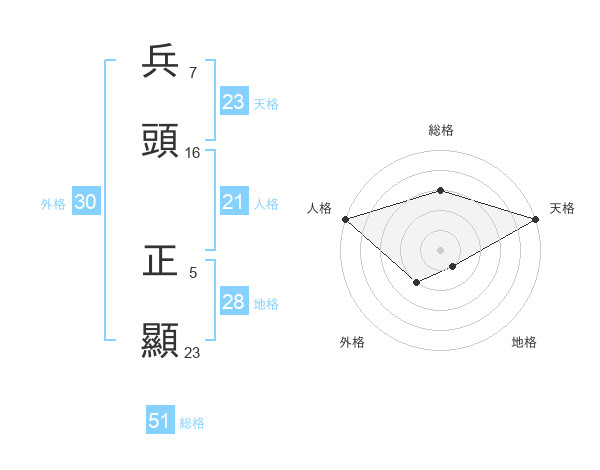兵頭 正顯さんを姓名の画数から五運を鑑定