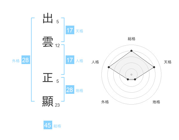 出雲 正顯さんの天格は17画の4点!