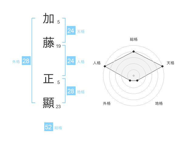 加藤 正顯さんの総格は52画の4点!