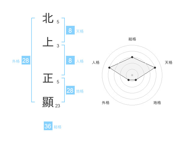 北上 正顯さんの天格は8画の4点!