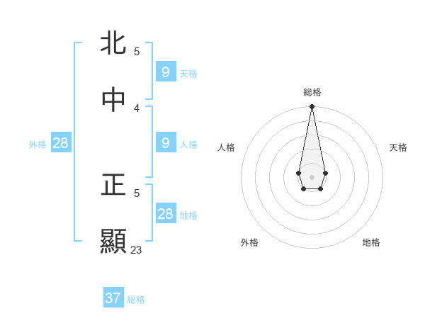 北中 正顯さんの総格は37画の5点!