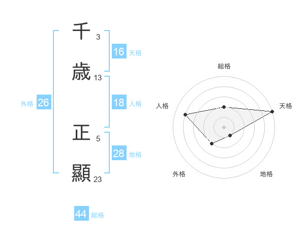 千歳 正顯さんの総格は44画の2点!