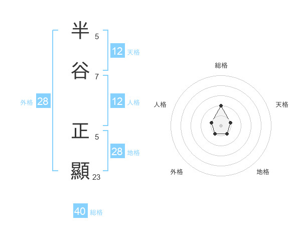 半谷 正顯さんを姓名の画数から五運を鑑定
