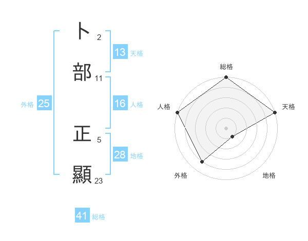 卜部 正顯さんの地格は28画の1点!