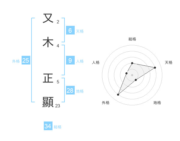 又木 正顯さんの総格は34画の2点!
