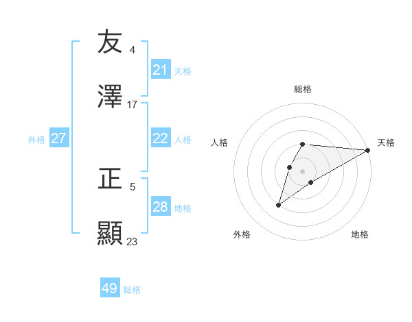 友澤 正顯さんの天格は21画の5点!