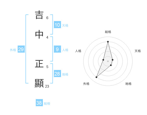 吉中 正顯さんの総格は38画の4点!