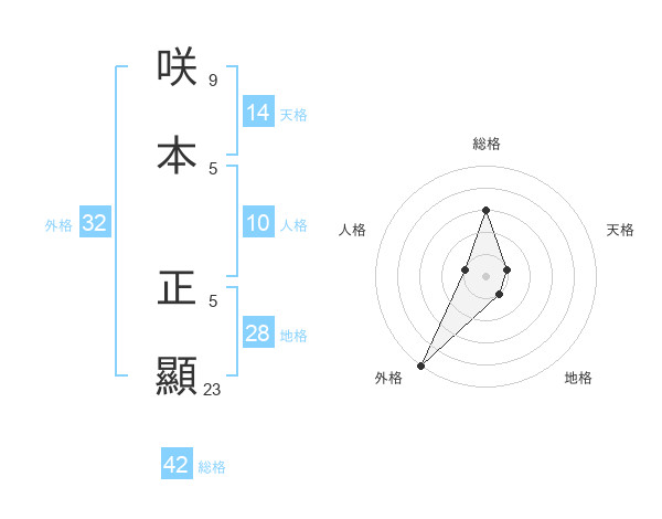 咲本 正顯さんの外格は32画の5点!