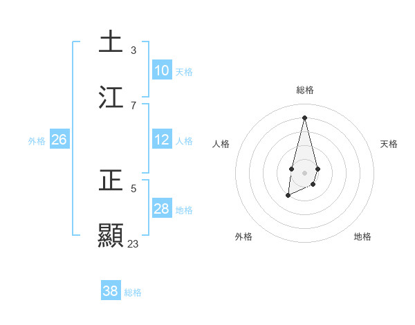 土江 正顯さんの総格は38画の4点!