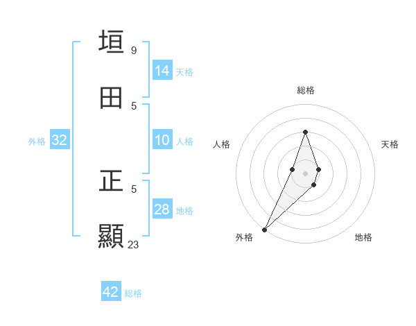垣田 正顯さんを姓名の画数から五運を鑑定