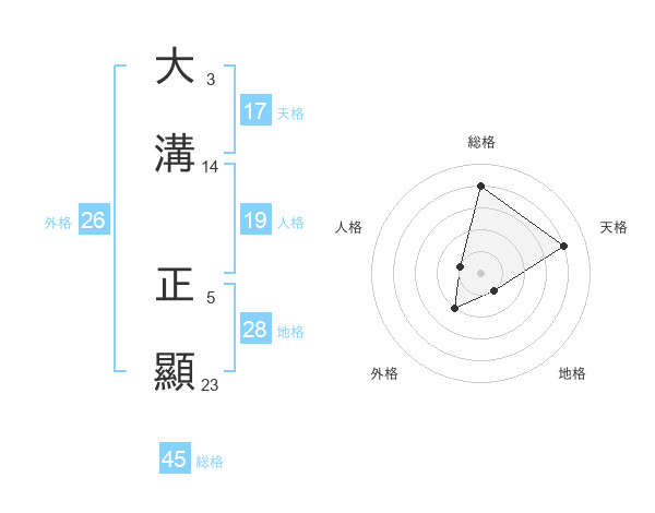 大溝 正顯さんの天格は17画の4点!