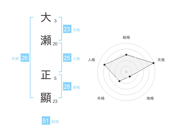 大瀬 正顯さんの天格は23画の5点!