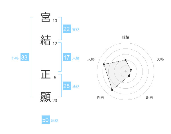宮結 正顯さんを姓名の画数から五運を鑑定