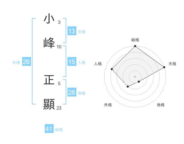 小峰 正顯さんの天格は13画の5点!