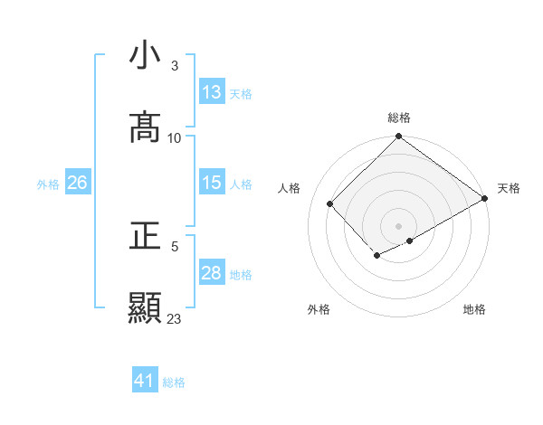 小髙 正顯さんの天格は13画の5点!