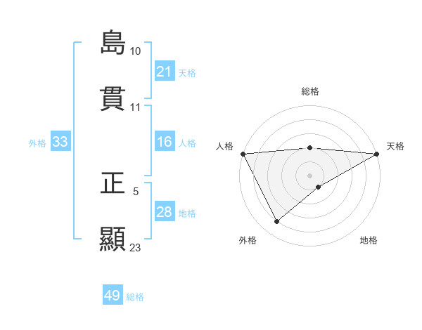 島貫 正顯さんの天格は21画の5点!