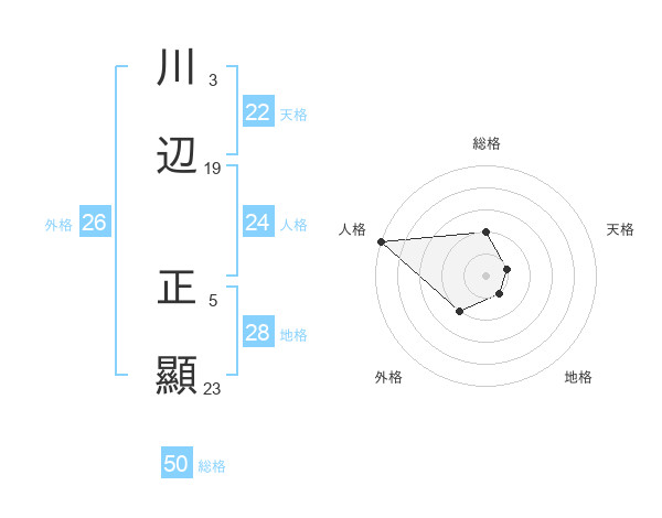 川辺 正顯さんの天格は22画の1点!