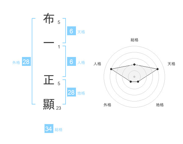 布一 正顯さんの地格は28画の1点!