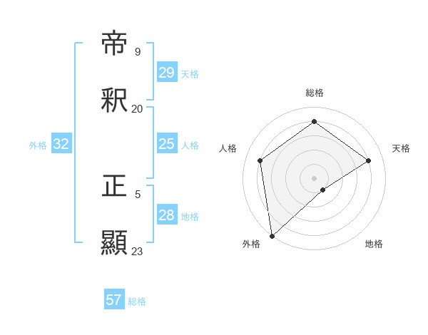 帝釈 正顯さんを姓名の画数から五運を鑑定