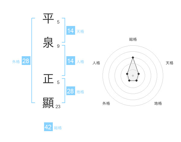 平泉 正顯さんを姓名の画数から五運を鑑定