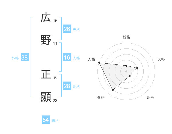 広野 正顯さんの総格は54画の1点!