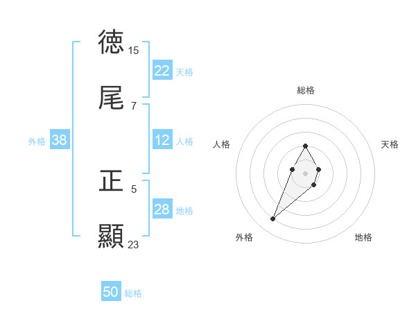 徳尾 正顯さんを姓名の画数から五運を鑑定
