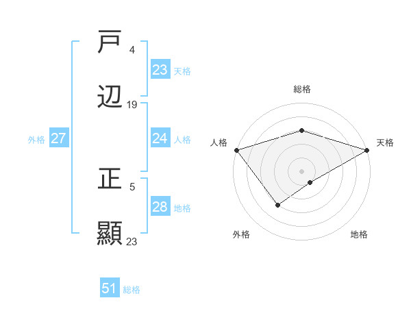 戸辺 正顯さんの総格は51画の3点!